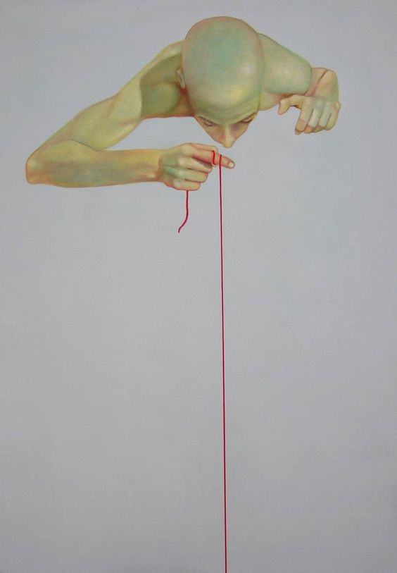 Tu sei stesa ad aspettare? Su quel filo rosso potremmo costruire un’altalena, potremmo indugiare a scendere, potremmo restarci su per sempre.
